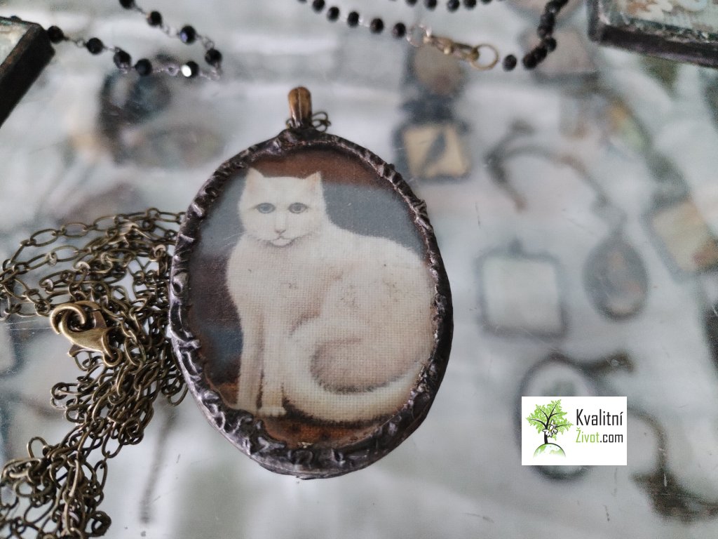 Medailon Bílá kočička z Itálie Krásný originální dárek